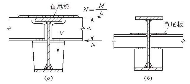 依照连接构造的传力性能,主次梁的连接可分为铰接(简支连接)和刚接(刚性连接)两种。 叠接连接中,次梁直接安放在主梁上,用螺栓或焊缝连接,固定其相互间位置,不需计算, 同时在主梁上的相应位置应设置支撑加劲肋,以避免主梁腹板承受过大的局部压力[图1(a)]。叠接可用于铰接连接,也可用于次梁为连续梁时的刚性连接,只是次梁应连续通过,不在主梁上断开。叠接连接的构造简单,次梁安装也方便,缺点是主次梁体系的建筑高度较大,应用常受限制。 侧面连接的建筑高度较小,次梁连于主梁的侧面,次梁顶面根据需要可与主梁顶面齐平[图1(b)、图2(a)],或比主梁顶面降低[图1(c)、图2(b)]。侧面连接可做成铰接(次梁为简支梁时),也可做成刚性连接(次梁为连续梁时)。对于铰接情况,次梁可以直接连在主梁的加劲肋上或连于短角钢上。图1(b)所示为用螺栓连于加劲肋上,构造比较简单,安装也方便,但需将次梁的上翼缘和下翼缘的一侧局部切除[图1(d)]。考虑到连接处有一定的约束作用,并非理想铰接,故在计算连接螺栓或焊缝时,可以将次梁支座反力加大20%~30%。对于刚性连接,由于次梁连接于主梁侧面时必然是断开的,为了保证两跨次梁在主梁处的连续性,必须在次梁上下翼缘设置连接板[图2 (a)、(b)中的鱼尾板]或其他可靠的构造措施来传递次梁的支座弯矩。