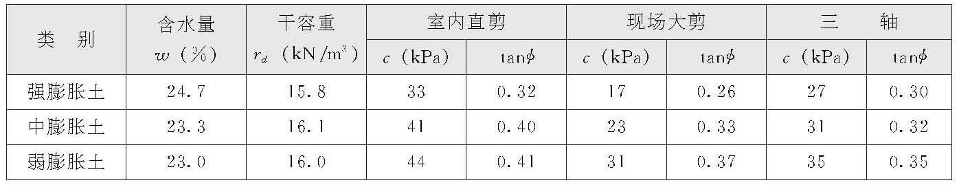 含有大量的亲水性黏土矿物成分,在环境温度和湿度变化影响下,可产生强烈胀缩变形的土。膨胀土的胀缩特性对工程建设具有重大的危害性,被作为一种特殊土看待。膨胀土一般呈灰白、灰绿、灰黄、棕红、褐黄等颜色,分布在二级及二级以上的阶地、山前丘陵和盆地边缘。在山地表现为低丘缓坡,而在平原地带则为地面龟裂、沟槽、无直立边坡。风干时出现大量的微裂隙,有光滑面、擦痕,呈坚硬、硬塑状态的土体易沿微裂隙面散裂,并遇水软化、膨胀。中国各地区都有膨胀土出露,以中南、西南地区较多。 各国对膨胀土的分类作了大量的研究,基于不同的目的,提出许多分类方法,诸如按黏粒含量、液限与自由膨胀率分类;按蒙脱石含量、比表面积与阳离子交换量分类;按胀缩总率分类;按最大胀缩性指标分类;按塑性图分类;按膨胀土结构特征与力学参数分类等。中国国标GBJ 112—87《膨胀土地区建筑技术规范》按自由膨胀率(δef)将膨胀土分为3类:40%≤δef<65%为弱膨胀土;65%≤δef<90%为中膨胀土;δef≥90%为强膨胀土。3类膨胀土具有不同的工程性质,例如中国南水北调中线工程南阳膨胀土的胀缩性指标和抗剪强度参数见表1、表2。由于强、中膨胀土裂隙发育,蒙脱石类矿物含量较高,因而强度的尺寸效应敏感,具明显的流变性。 膨胀土是一种分布广且危害性大的特殊土。非饱和膨胀土的理论研究,特别是荷载、含水量、吸力之间关系的研究,是全面认识和正确治理膨胀土的重要途径。吸力是非饱和土特有的关键问题,它的变化对强度与变形都有很大的关系。由于吸力场的实测比较复杂,因此探索用数值分析方法来预测吸力场,并将吸力研究与微结构研究联系起来,建立土体结构的数学模型,发展新的应用性的数值分析方法,进而解决工程实际问题,是发展的方向。 膨胀土的胀缩现象可使房屋破坏、道路隆起、渠道衬砌上抬和开裂、堤岸或边坡产生滑塌、地下洞室的衬砌结构产生垂直洞轴线的全断面径向张性胀裂破坏等问题。研究时要调查工作地区的地貌和地质条件,了解同类土上建筑物的变形情况,按要求进行胀缩性与物理力学试验,为设计和防治措施提供依据。