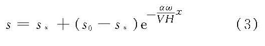 式中,ω为泥沙沉速;s*为水流挟沙能力,α为系数。假定ω沿程不变,积分上式即得含沙量沿程变化计算公式