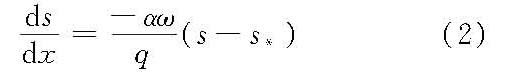 式中,s为断面平均含沙量;x为沿流程距离;q为单宽流量;gsi为单位时间内重力作用下沉在单位床面上的沙量;gs0为单位时间内紊动作用从单位床面上掀起的沙量。设gsi=αsω,gs0=αs*ω,代入式(1),可得