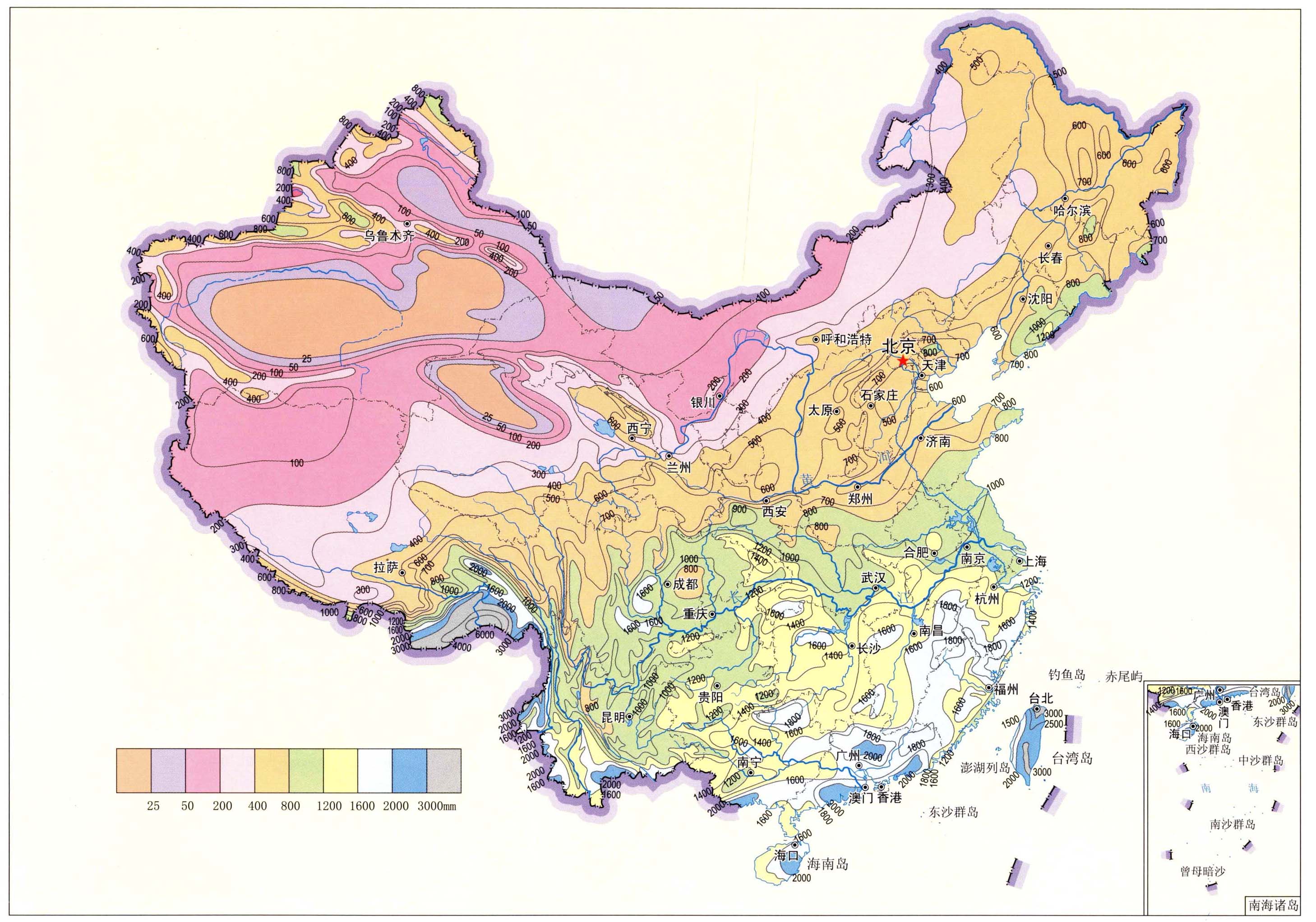 ⅩⅤ—1 中国年降水量图
