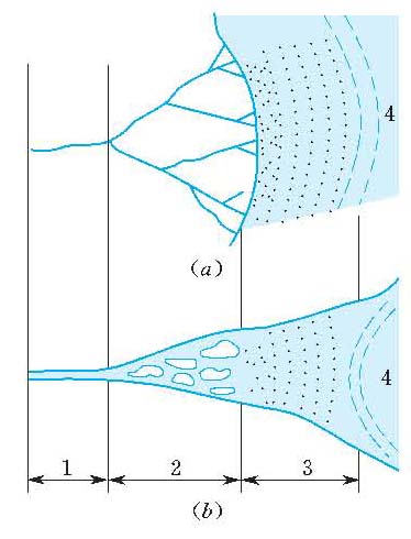 河口区分段图 (a)三角洲;(b)三角港1—河流近口段;2—河口段;3—口外海滨;4—口外海区