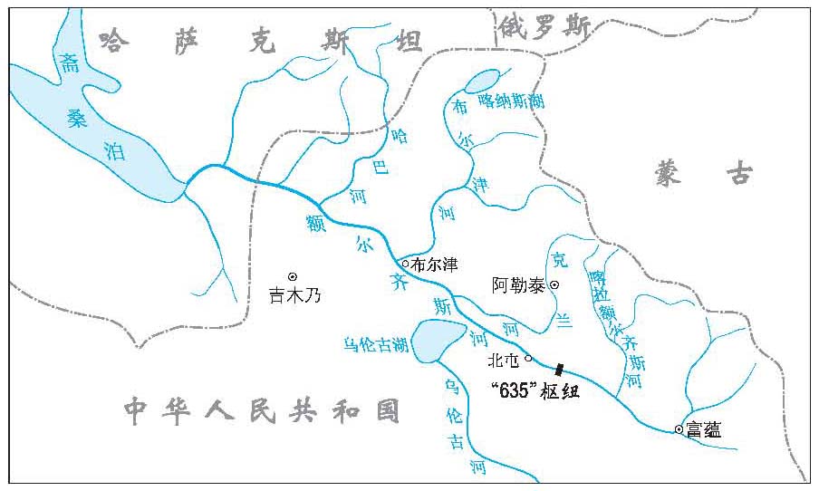 鄂毕河的最大支流,流经中国、哈萨克斯坦、俄罗斯的国际河流。额尔齐斯河发源于中国新疆维吾尔自治区的阿尔泰山南坡,沿途汇入布尔津河等支流,西流注入哈萨克斯坦境内的斋桑泊(见图),转向北流经沙漠、草原、森林区,在俄罗斯汉特—曼西斯克汇入鄂毕河,流进北冰洋。额尔齐斯河全长4 248km,流域面积195万km2,中国境内河段长633km,流域面积5.73万km2,是中国属于北冰洋水系的唯一河流。河水补给以冰雪融水为主,降雨补给为辅。中国境内支流均源于阿尔泰山南坡,从北向南在北岸汇入干流,形成典型的梳状水系。阿尔泰山南坡迎风面,山麓年降水200~300mm,中山带超过600mm。洪水期为5~7月份,枯水期为1~2月,每年有5~6个月的结冰期。入鄂毕河处的年径流量约950亿m3,中国境内年径流量为112亿m3。中国境内水能理论蕴藏量为3 420mW,可开发利用量约2 500mW。 中国境外干流建有石山口及布赫塔尔明等水电站,装机容量1 007mW。中国境内建有“635”枢纽工程,库容1.86亿m3,装机32mW;并建有引额供水工程,以缓解当地工农业生产、生活和生态环境用水的紧缺矛盾。