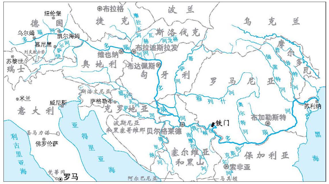 欧洲第二大河。发源于德国南部的黑林山东麓,干流流经德国、奥地利、斯洛伐克、匈牙利、克罗地亚、塞尔维亚和黑山、罗马尼亚、保加利亚、乌克兰等9国,于罗马尼亚最东部的苏利纳注入黑海,是欧洲一条重要的国际河流。奥地利维也纳以上为上游,河道沿巴伐利亚高原的北缘自西向东流,穿行于山地、丘陵之间,河谷窄深,河床坡降大,多险滩湍流,经过捷克高原南部的丘陵地区,进入维也纳盆地。上游接纳发源于阿尔卑斯山脉北坡的莱希河、伊萨尔河、因河等。维也纳至塞尔维亚和黑山与罗马尼亚之间的铁门峡谷为中游,河谷宽阔,河道弯曲,水流平缓,多汊河。中游接纳摩拉瓦河、瓦赫河、赫龙河、蒂萨河及德拉瓦河、萨瓦河、南摩拉瓦河等。铁门附近,河流进入长达140km的峡谷,有的谷宽仅150~200m,水深流急,水能资源丰富。铁门以下为下游,河谷宽阔,接近河口时,河网密布,形成长达80km的三角洲,河宽达15~20km。下游接纳发源于喀尔巴阡山脉南坡的奥尔特河、锡雷特河、普鲁特河等左岸支流,而右岸支流较少,且多为源短小河(见图)。 多瑙河全长2 850km,流域面积81.6万km2,有大小支流300多条。 流域属温带气候区,具有由海洋性气候向大陆性气候过渡的性质。干支流的上游地区年降水量1000~1 500mm,中下游平原地区为700~1000mm,冬季降雪占年降水量10%~30%。春季河流水位上涨,以阿尔卑斯山脉和喀尔巴阡山脉的融雪水补给为主,高水位一直延续至夏季。夏末秋初,河水位下降。秋季由雨水补给,水位再次上升。冬季河流封冻期不长。河口年平均流量为6 430m3/s,年入海水量2 030亿m3。 多瑙河是世界上开发利用程度很高的河流。干流规划水电站74级,装机容量8 230mW。已建和在建梯级水电站53级,总装机容量5 350mW,其中1970年由南斯拉夫和罗马尼亚两国共同建成的铁门水电站,装机2 050mW,是多瑙河流域最大的水电站;1983年,两国又合建铁门2级电站装机432mW。流域内各支流已建装机容量100mW以上的水电站29座,共计装机容量8 300mW。干流梯级水电站均建有船闸,可以通航。多瑙河干流为自由通航的国际航道,德国乌尔姆以下2 500km航道航运繁忙。干流沿岸有维也纳、布达佩斯、贝尔格莱德等城市,支流可通索非亚和布加勒斯特,旅游业很发达。德国已在多瑙河上游凯尔海姆建成向北通至莱茵河支流美因河的莱茵河—多瑙河运河,从而构成黑海至北海、贯穿欧洲大陆的水上运输大动脉。中下游已发展灌溉面积500万hm2,远景将逐渐扩大。奥地利的首都维也纳防洪任务很重,除堤防外,还开挖一条分洪道,可分洪5 200m3/s。匈牙利境内修有400km堤防,设计防洪标准为100年一遇。